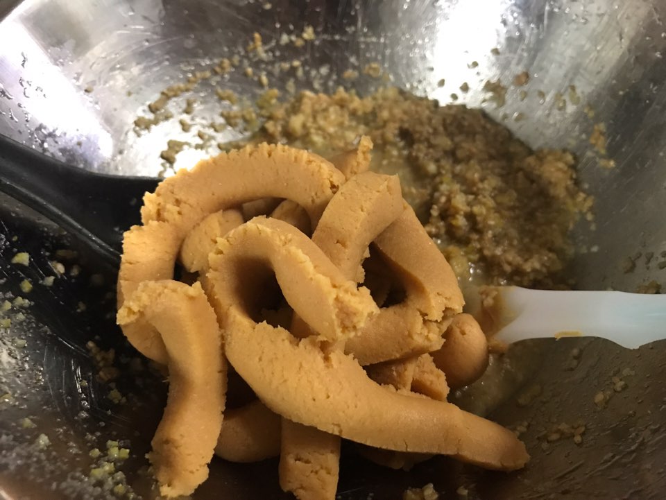 보울에 1개 분량의 설탕또는 꿀, 다져두었던 레몬제스트, 다진호두 땅콩버터를 넣어주시고요.