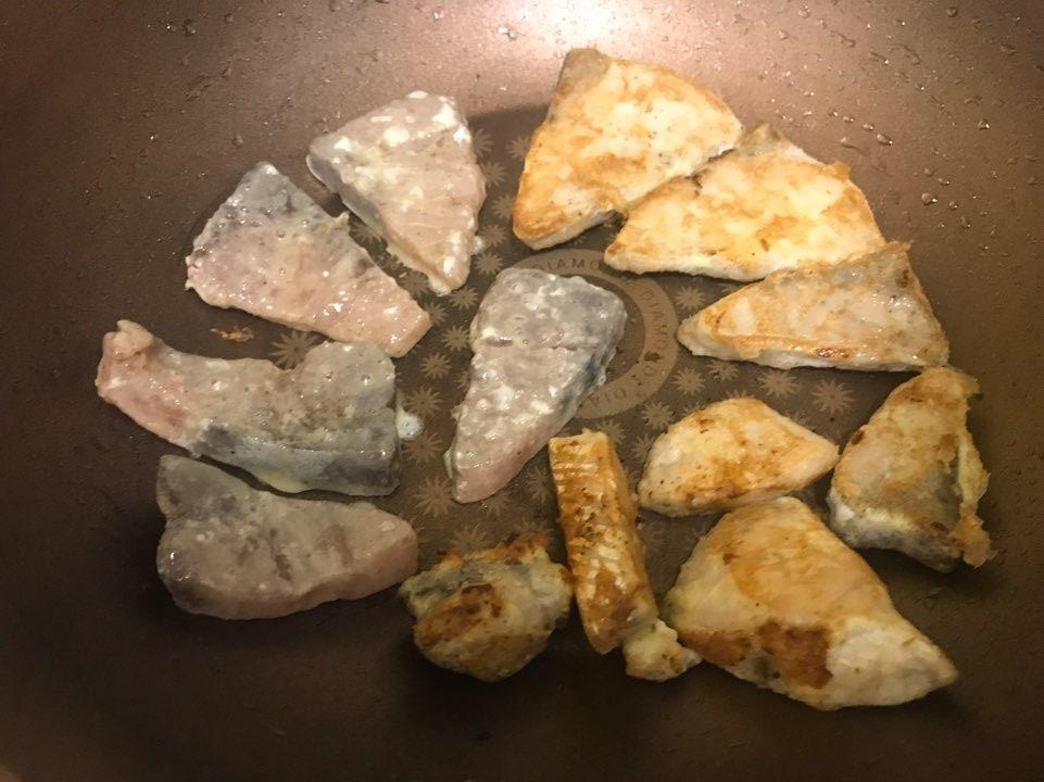계란 입혀서 굽습니다 살이 아주 탄탄하네요. 연신 '회로 먹었으면 더 좋았을텐데...' 중얼거림....