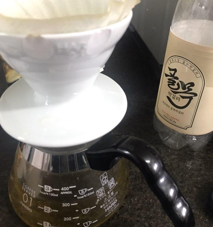 어젯밤부터 커피필터에 넣고 여러번 걸렀습니다.