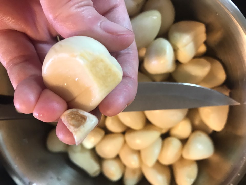 고의로 상처를 내주는 거예요. 마늘에 요철이 있다면 그역시도 다 깎아내 주세요.