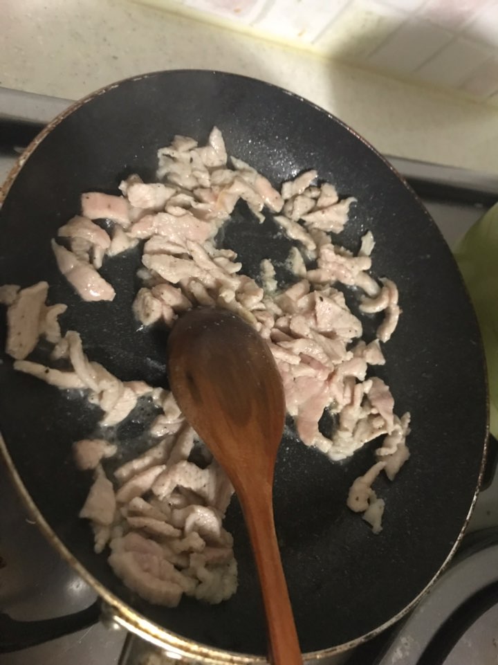 돼지고기가 남아서 먼저 볶아줬어요. 신선하지 못한 고기라서, 허브솔트와 후추 소주를 좀 넣어줬습니다
