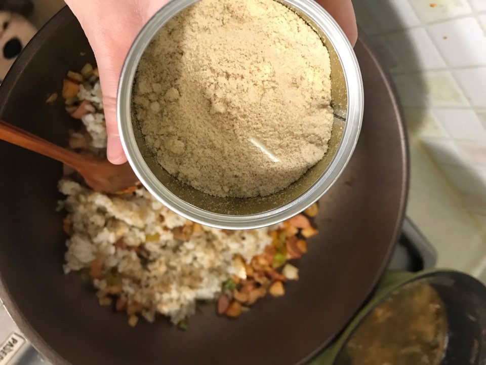 돼지고기나 참치를 넣은 볶음밥이라고 생각해요