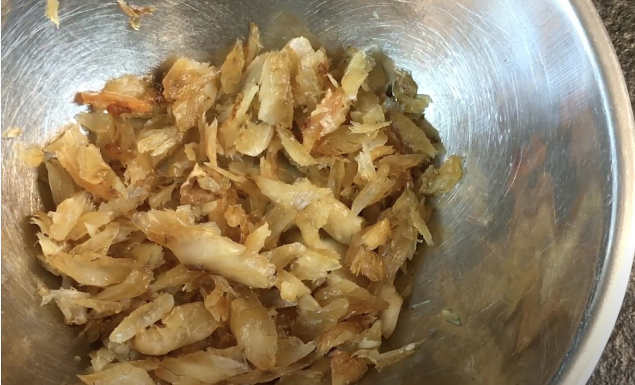 잘 쪄진 굴비를 살만 발라냈는데요 나름 노릇노릇 쫄깃해보여요~
