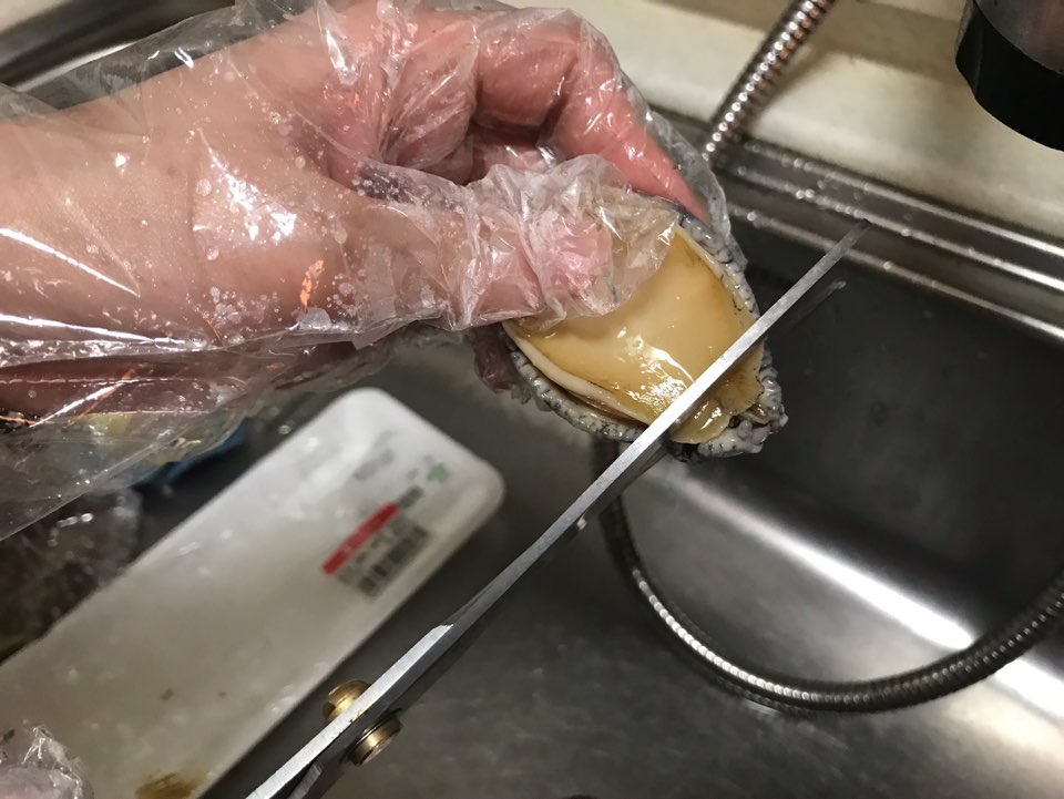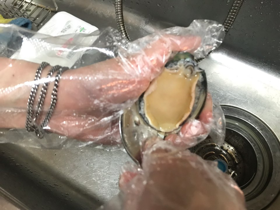 전복의 두개의 모서리중 특히 좀 지저분하고 복잡한 구조를 가진 부분이 입이거든요. 신경써서 닦아주세요.