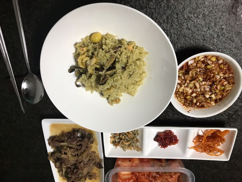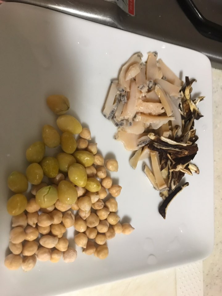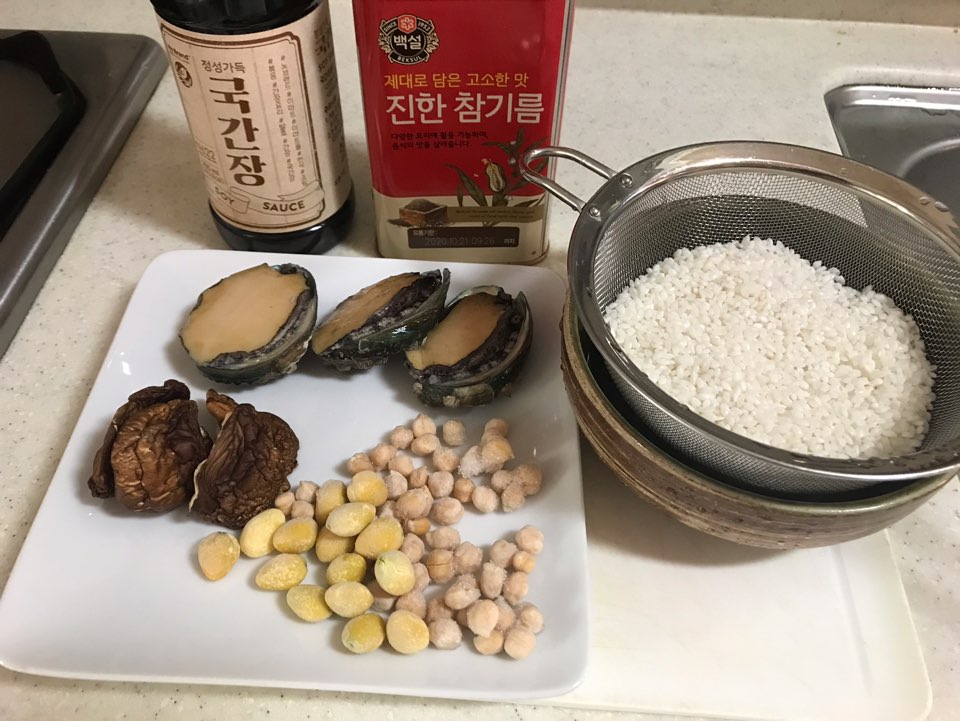 저는 주재료로 집에있던 콩,은행,표고버섯과 전복을 썼고요