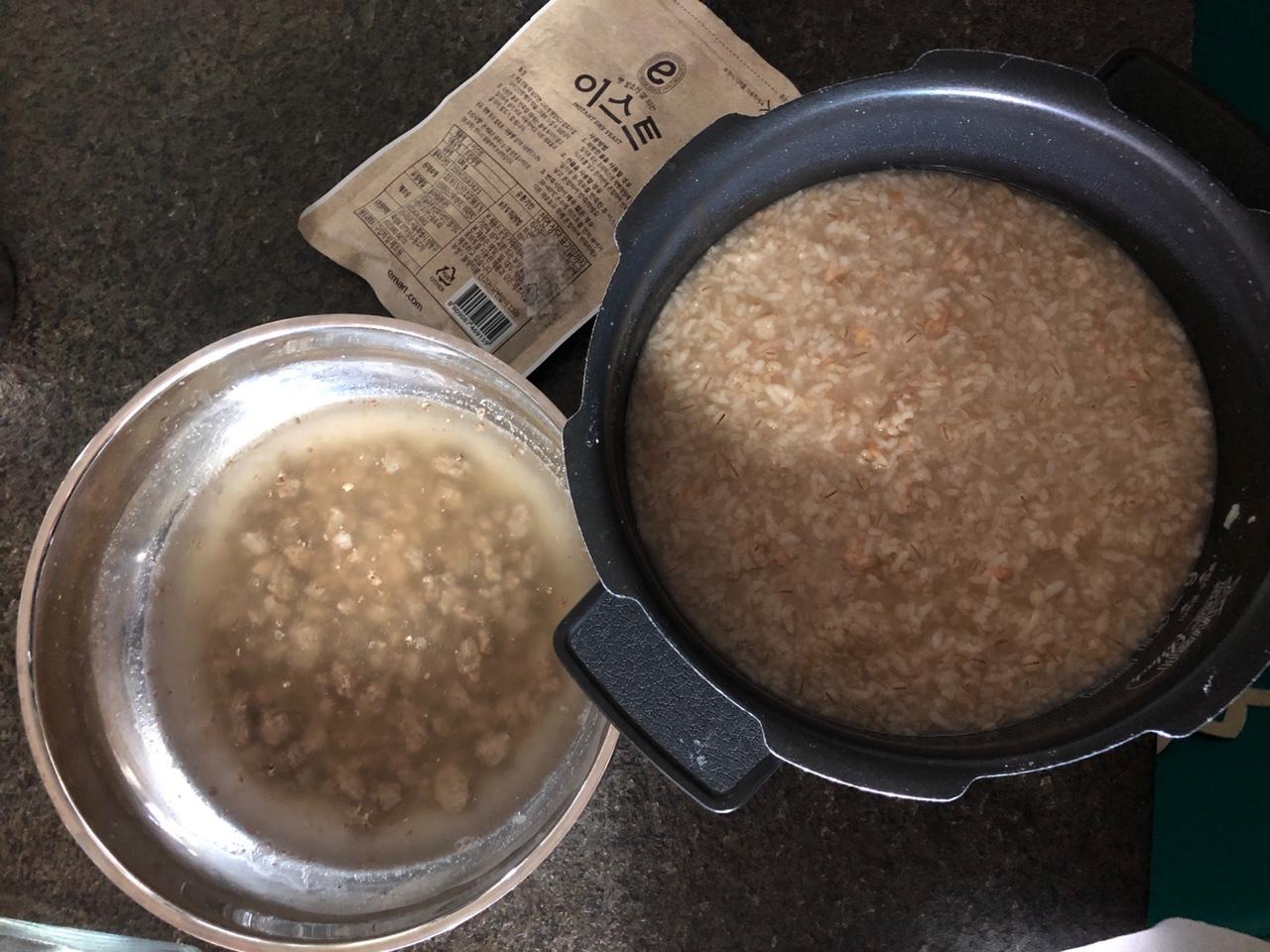중간에 쌀밥이 남아서 더 넣어줬더니 양이 무쟈게 많아졌네요...