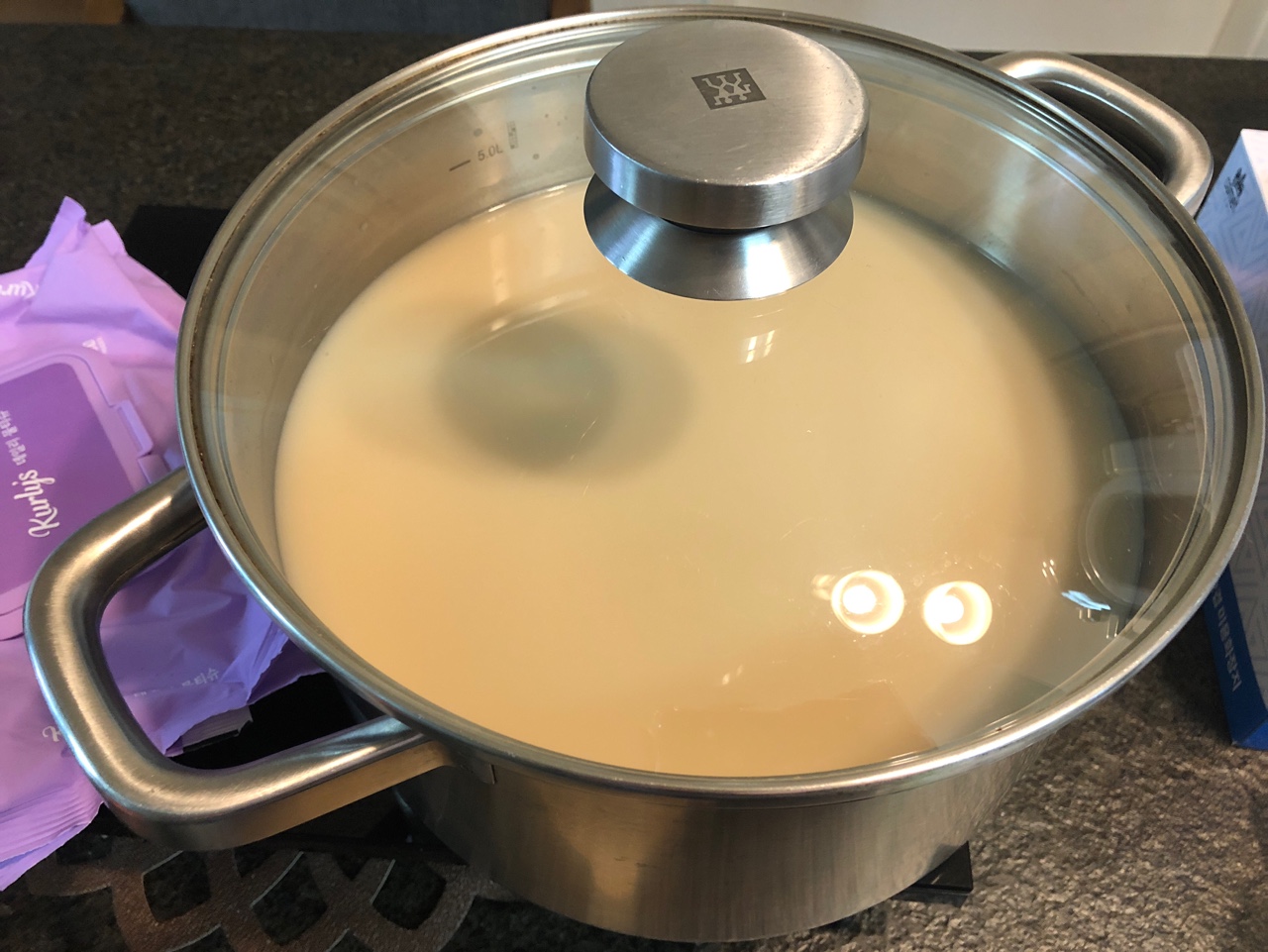 저는 스텐냄비에 넣고 가스가 적당히 빠질수 있도록 뚜껑을 닫았어요.