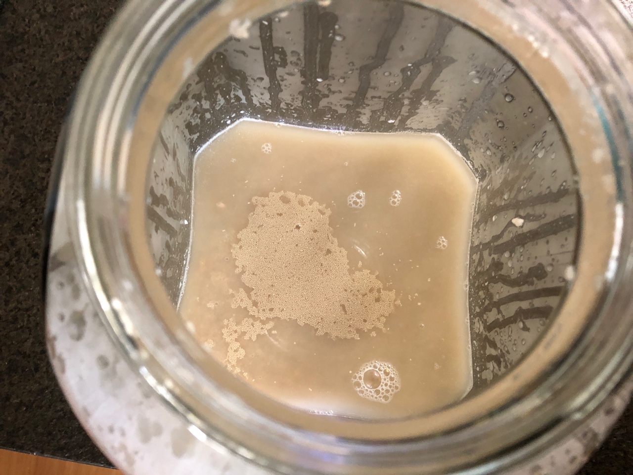 약 6시간 뒤. 아주 뽀골뽀골뽀골 탄산이 올라옵니다. 설탕이 일을 잘 하고 있군요.