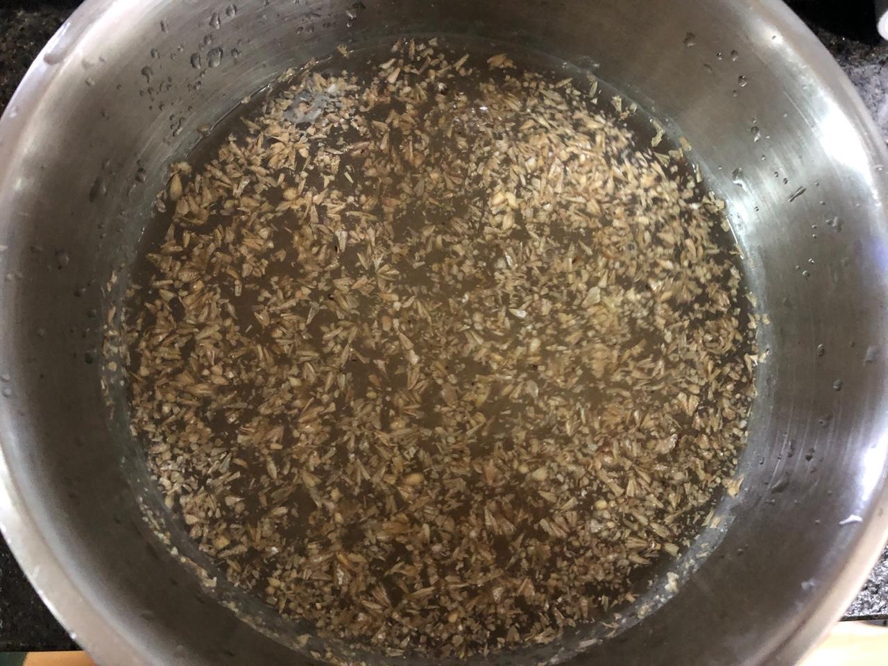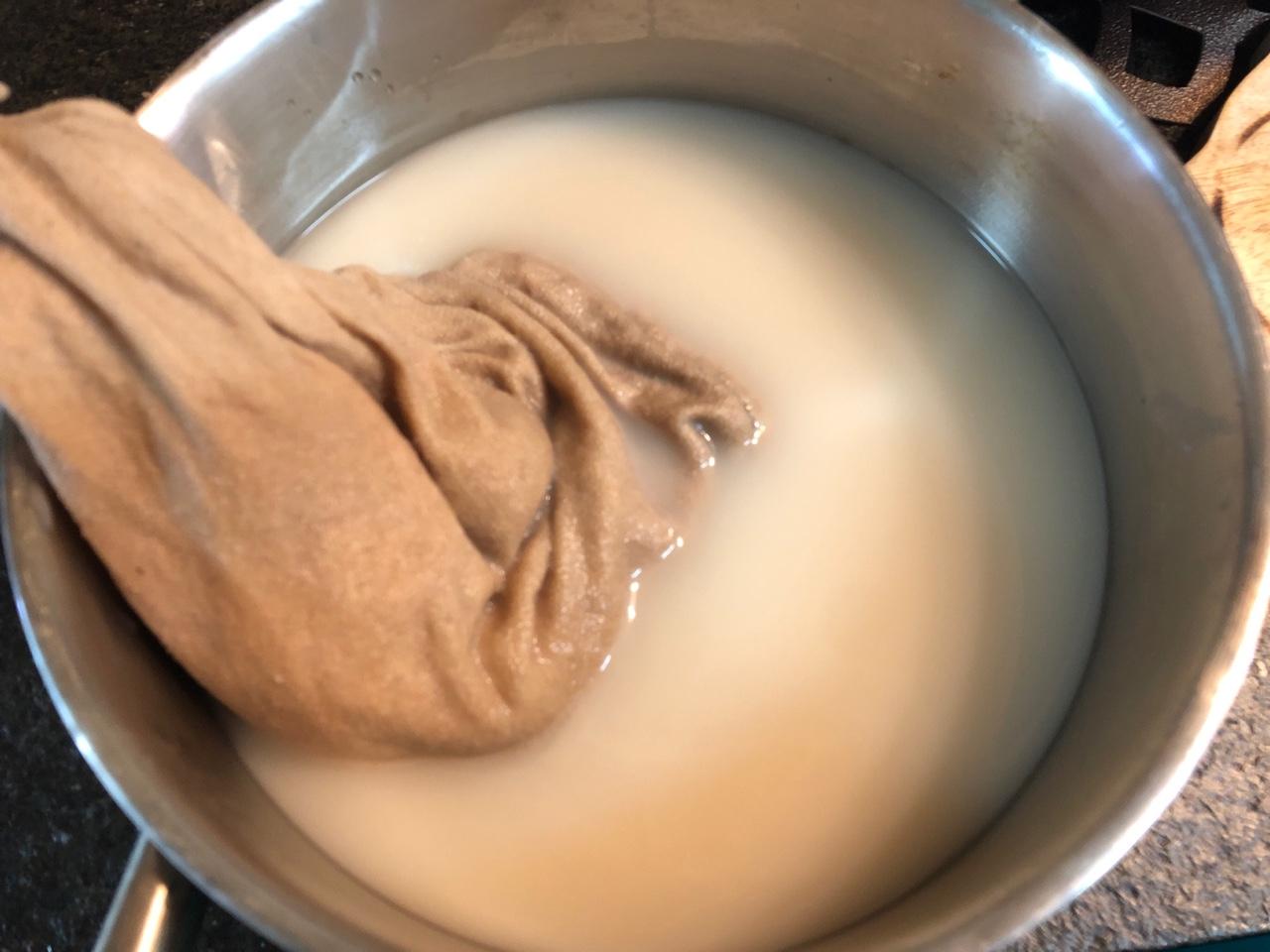 30분정도 불린 누룩은 체에 잘 걸러서 누룩물만 받아줍니다.