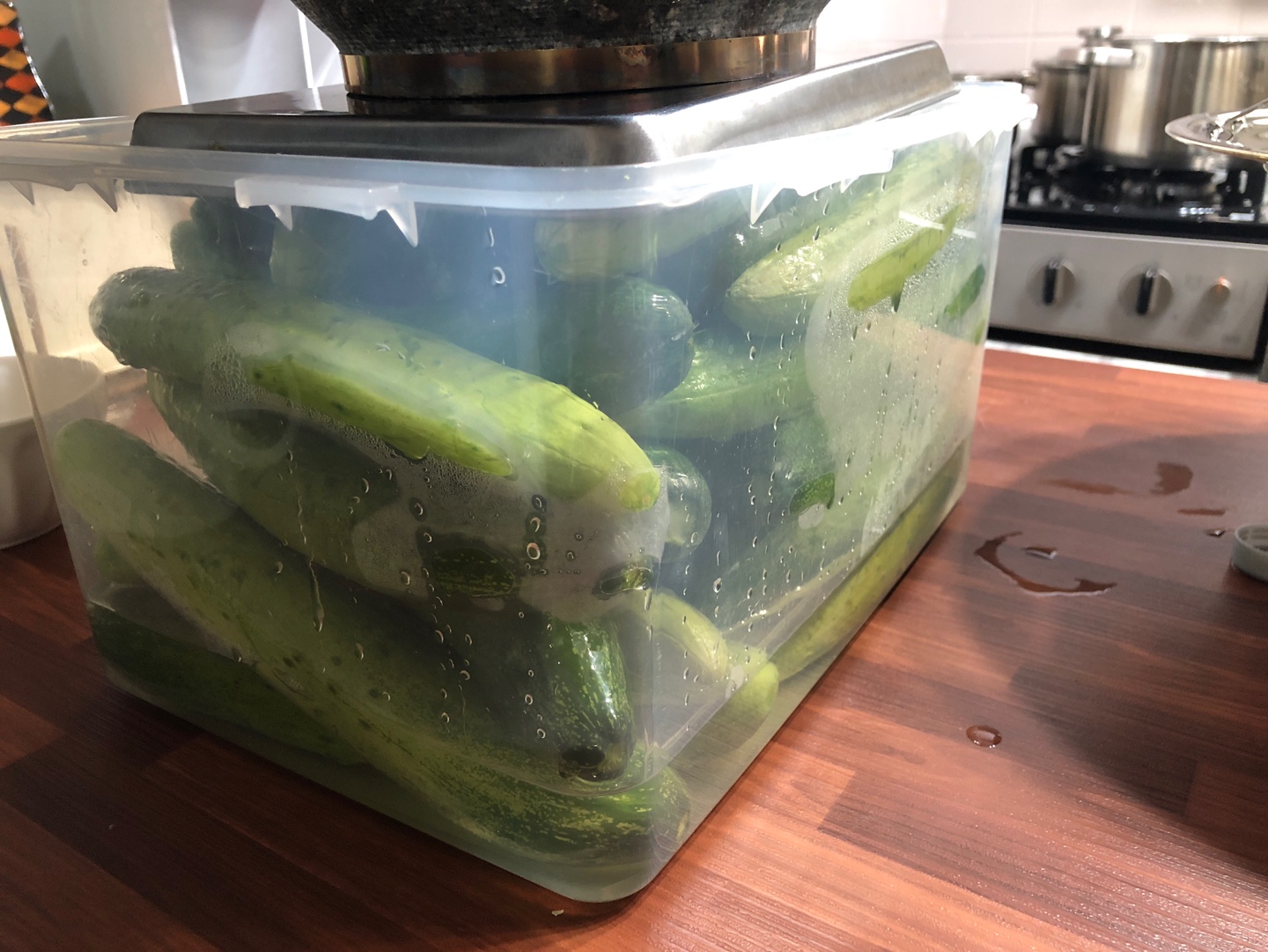 한 4일뒤..? 소금물 숙성하면서 수분 더 짜주려고 누르개 덮고