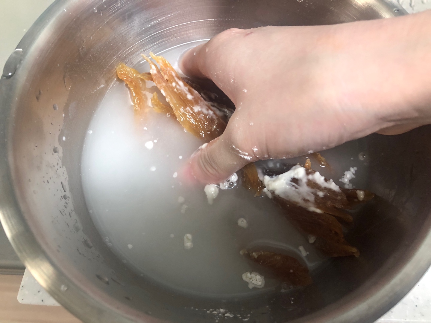 밀가루 묻혀서 두번 문질러 닦아줬습니다.