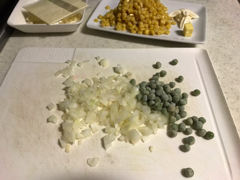 추가로 양파랑 완두콩이 남아서 같이 넣어줬는데 안 넣어도 무방하고