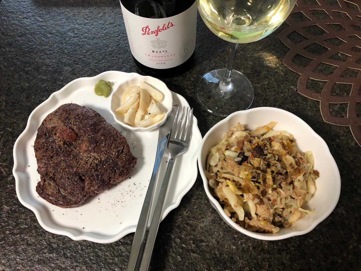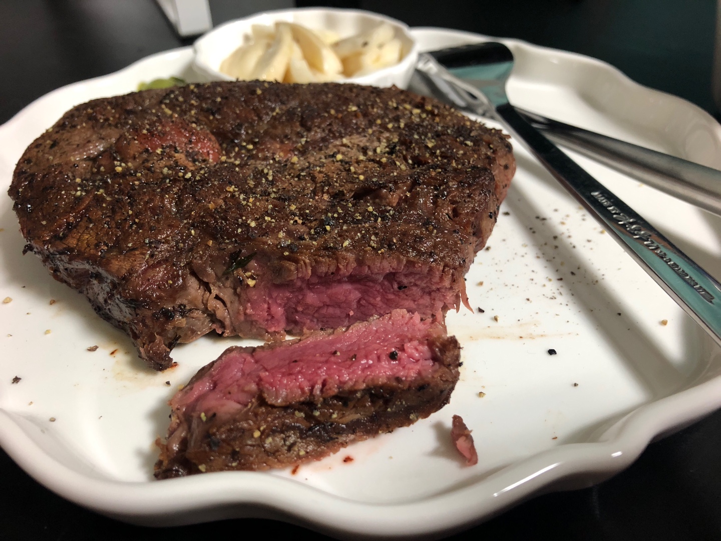 이미 산 부채살을 구워서 후추를 잔뜩 뿌렸는데 부채살은 스테이크에 적합하지 않은것 같네요.