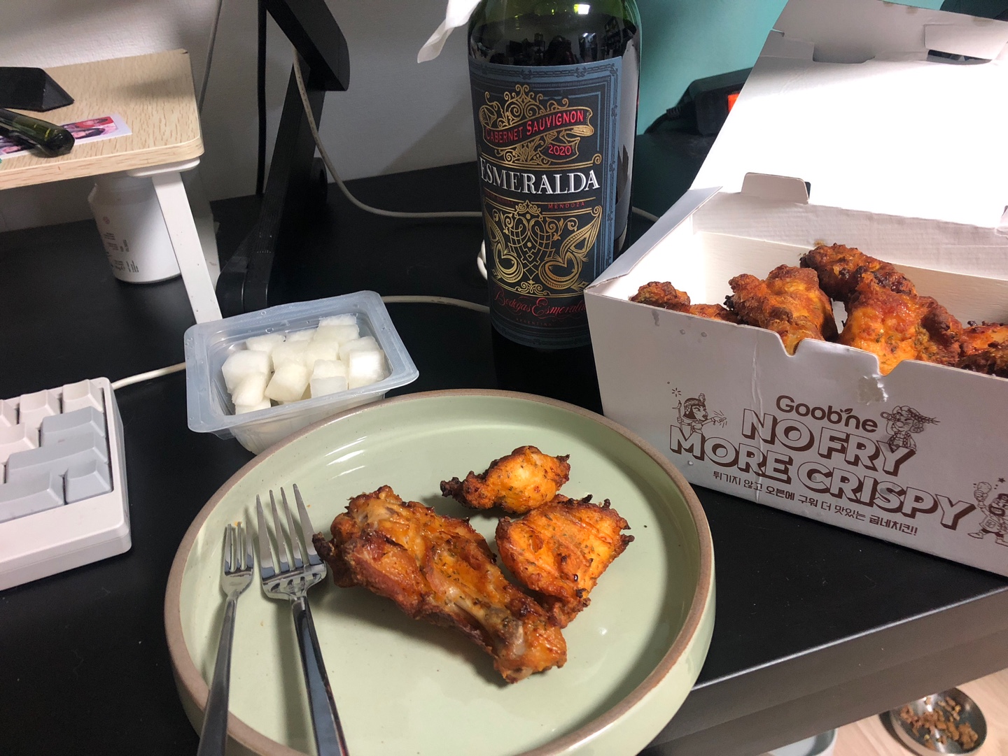 후다닥 집에 뛰어가서 샤워하고 옷 갈아입고 나가서 치킨 받고