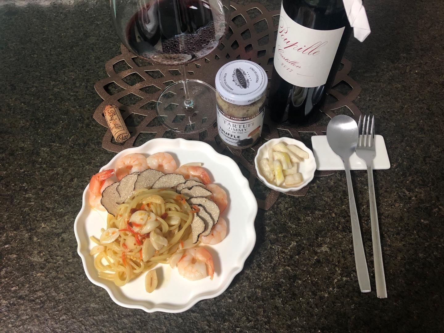 요건 오늘의 저녁 뿌삐유와 순수 올리브오일 스파게티