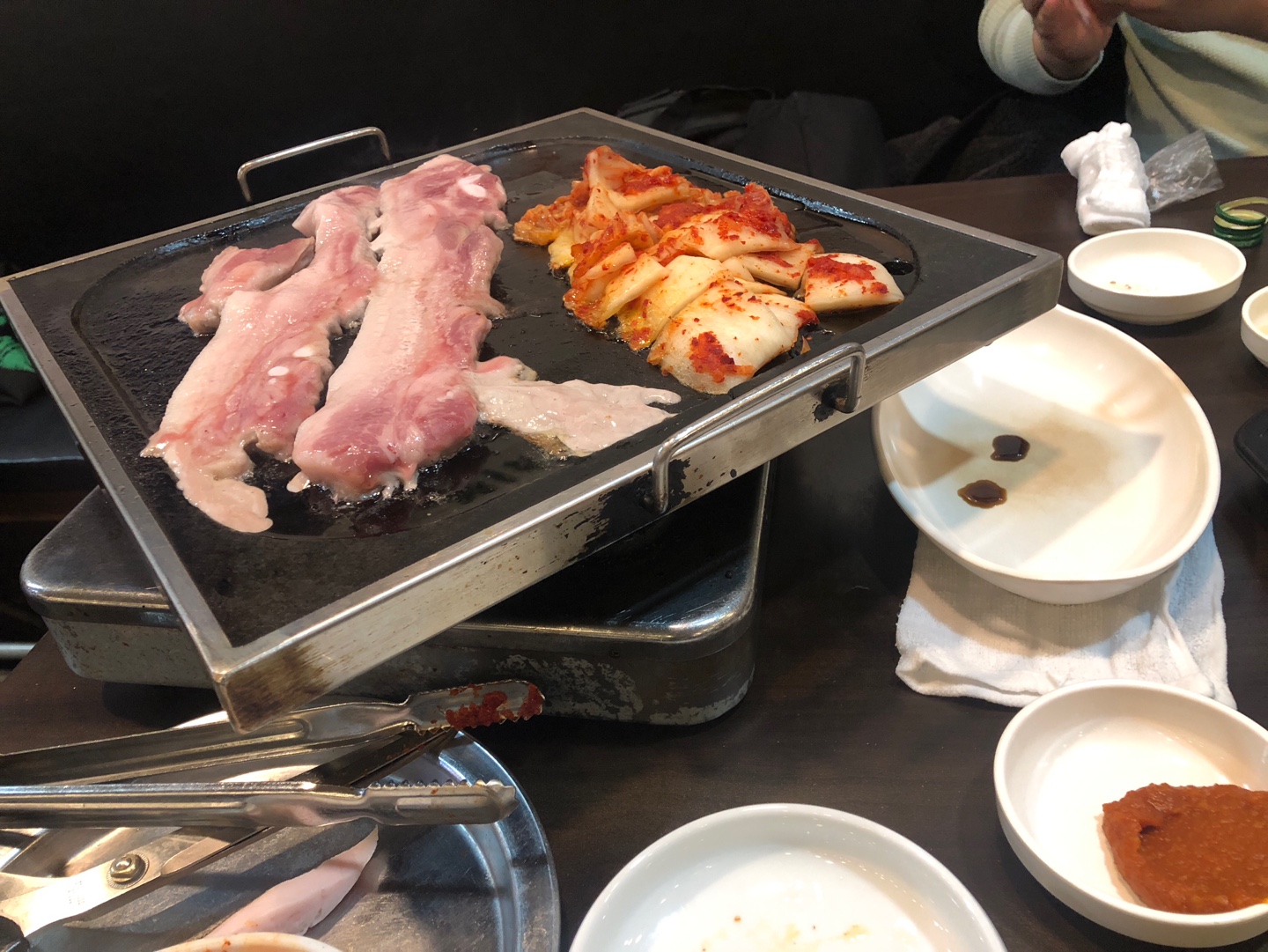 저 기름튀는 불판좀 바꿨으면.... 내 옷에도 다튀어서 후드 베림 ㅠㅠ