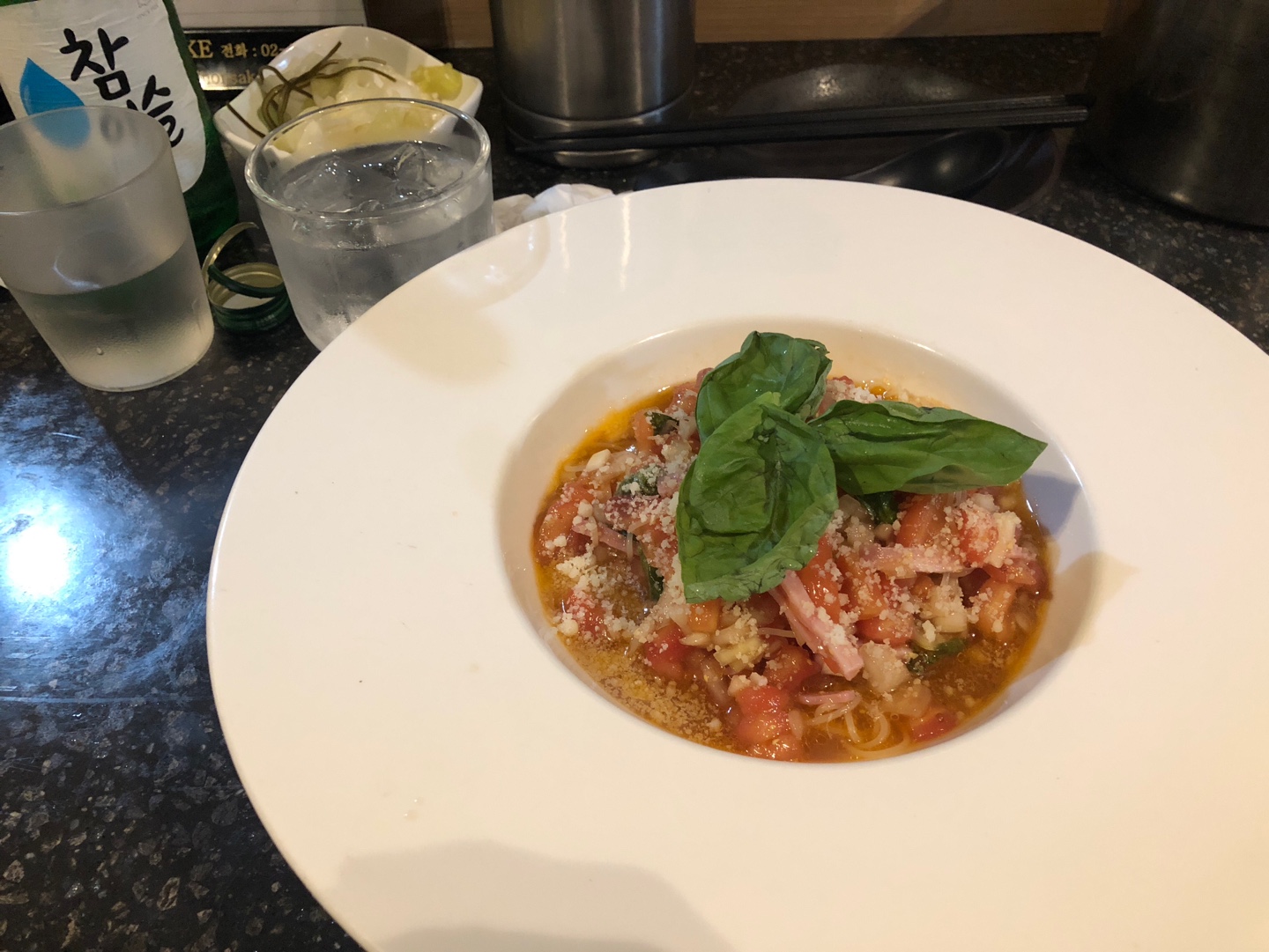 오늘의 메뉴는 엔젤헤어 면을 넣은 토마토 냉파스타