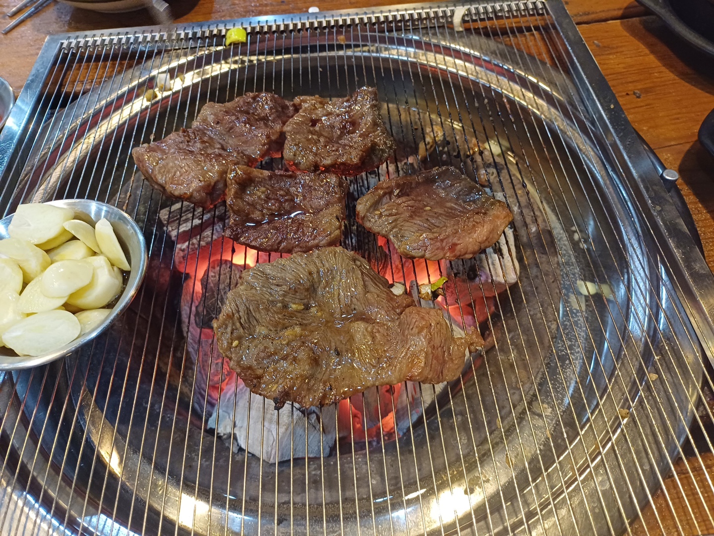 양갈비는 심지어 질기고 맛없습니다. 테이블 간격도 좁고, 마늘은 왜케비싼겨?