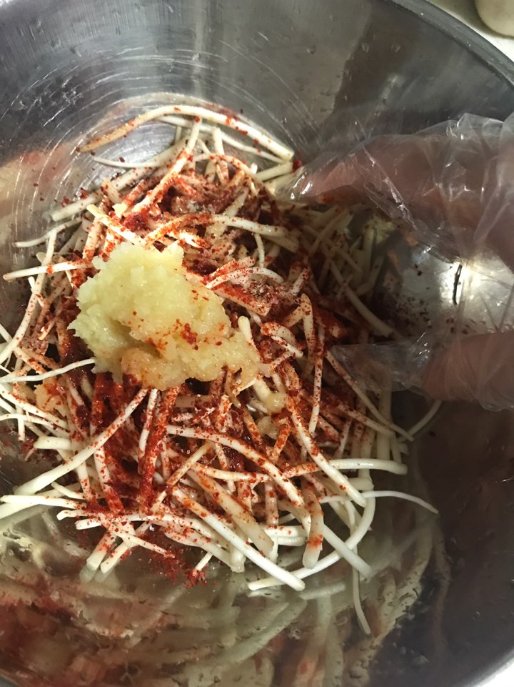 양념 : 액젓 3, 고춧가루 1, 다진마늘 1