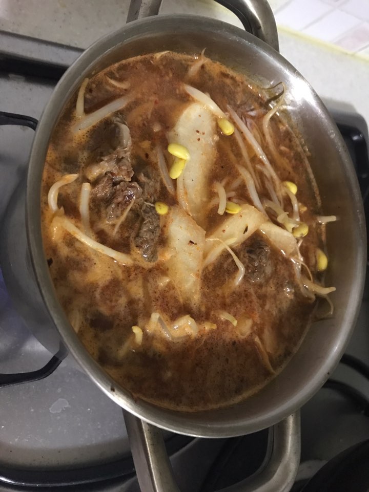 이렇게 해도 저는 간이 좀 부족했거든요. 국간장이나 연두로 밑간이 되있고, 소고기 육수가 나와있기 때문에