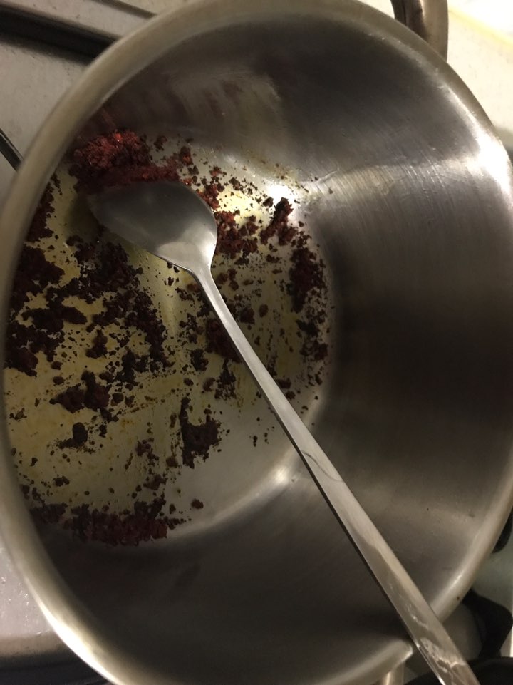불을 꼭 끄고 고춧가루를 한스푼 넣어 볶아줍니다. (저는 기름이 적어서 금방 다 흡수됬네요;)