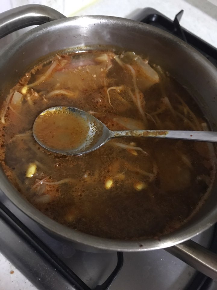 너무 묽다 싶어서 고춧가루를 추가해줬습니다.