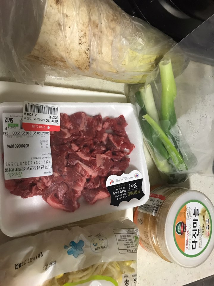 마트에 가니 다진마늘도 임박할인, 소고기도 임박할인, 그냥 맨날 할인하는건 다 주워왔기 때문이지요